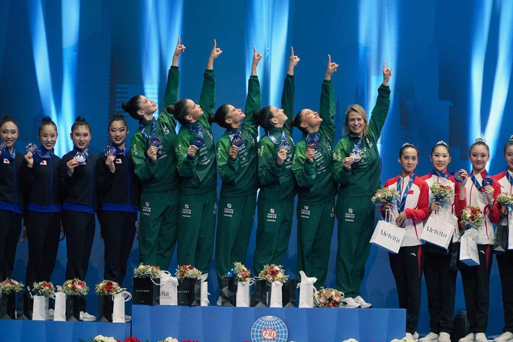 A ginástica rítmica brasileira alcançou um feito inédito neste sábado (18), ao conquistar sua primeira medalha de ouro no conjunto geral em uma etapa de