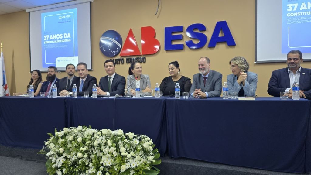 “Nossa Constituição Cidadã precisa ser estudada e debatida constantemente, é uma alegria receber tantos advogados e advogadas para discutir temas relacionados ao constitucionalismo brasileiro”, frisou a presidente da Ordem dos Advogados do Brasil – Seccional Mato Grosso (OAB-MT), Gisela Cardoso, durante o Seminário – 37 Anos da Constituição Federal: Novos Desafios do Constitucionalismo Brasileiro, realizado no auditório da Escola Superior da Advocacia (ESA-MT), nos dias 22 e 23 de outubro. O evento realizado pela OAB-MT, por meio da Comissão de Estudos Constitucionais e da ESA-MT, reuniu dezenas de advogados e advogadas em palestras e debates conduzidos por especialistas no tema. “É indispensável que a comunidade jurídica do estado de Mato Grosso passe a discutir temas atuais e urgentes do constitucionalismo brasileiro, os quais são necessários para manter essa estrutura jurídica que possibilita a garantia de direitos fundamentais, a efetivação de direitos sociais e o desenvolvimento socioeconômico, assunto esse tão caro ao nosso estado ”, disse o presidente da Comissão de Estudos Constitucionais da OAB-MT, Kennedy Bispo Silva Conceição.