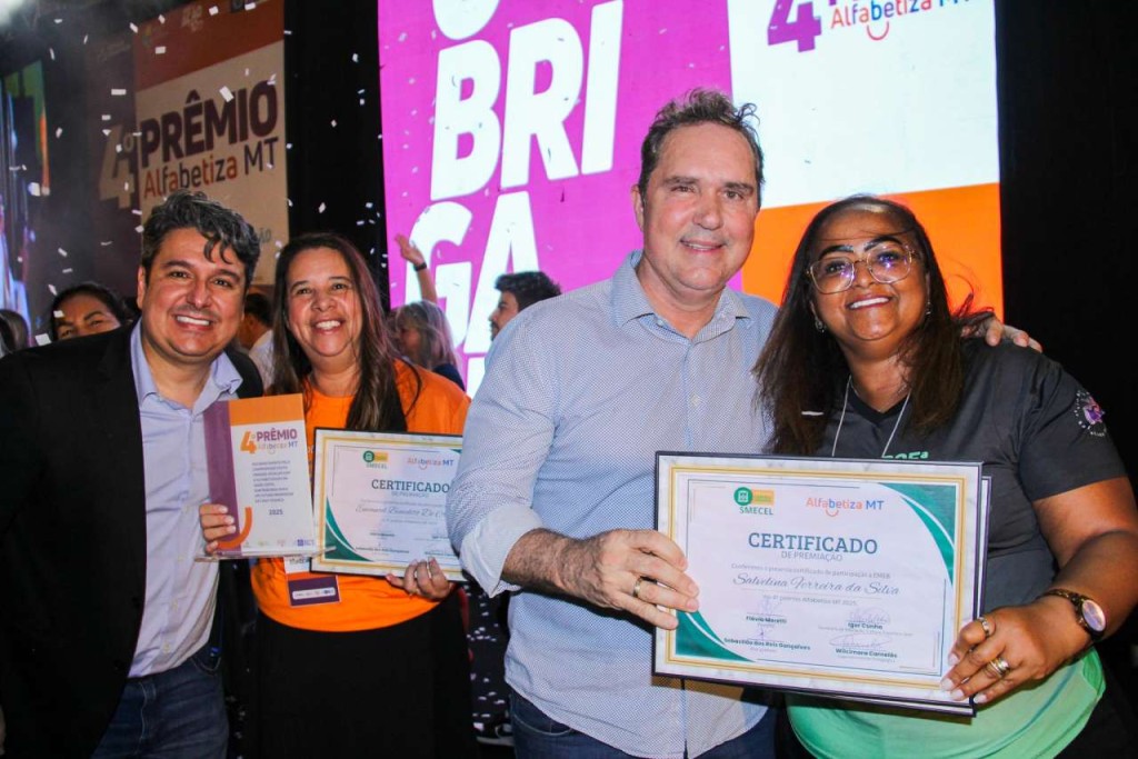 A rede municipal de Várzea Grande teve 12 escolas contempladas com o Prêmio Alfabetiza MT 2025. Além da premiação principal – ‘Escolas Top 10’ – a educação municipal foi vencedora na categoria Desempenho e na de professora que mais se destacou na Alfabetização Com Equidade.