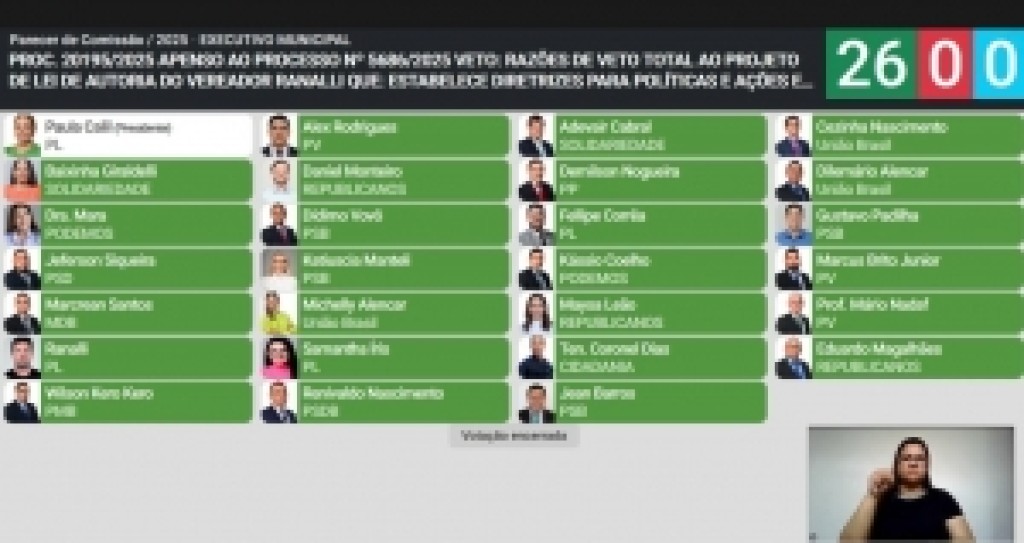 A Câmara de Cuiabá derrubou, nesta quinta-feira (21), por 26 votos, o veto total do Executivo ao projeto do vereador Rafael Ranalli (PL), que cria diretrizes para uma campanha de saúde sexual e reprodutiva voltada a adolescentes e jovens da rede pública municipal. Com a decisão, a proposta segue para publicação no Diário Oficial, tornando-se lei.