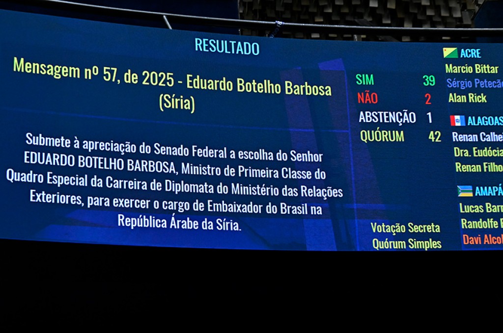 A indicação foi transformada em um projeto de decreto legislativo (PDL 249/26), a ser enviado ao Senado Federal, onde também passará por escrutínio secreto.