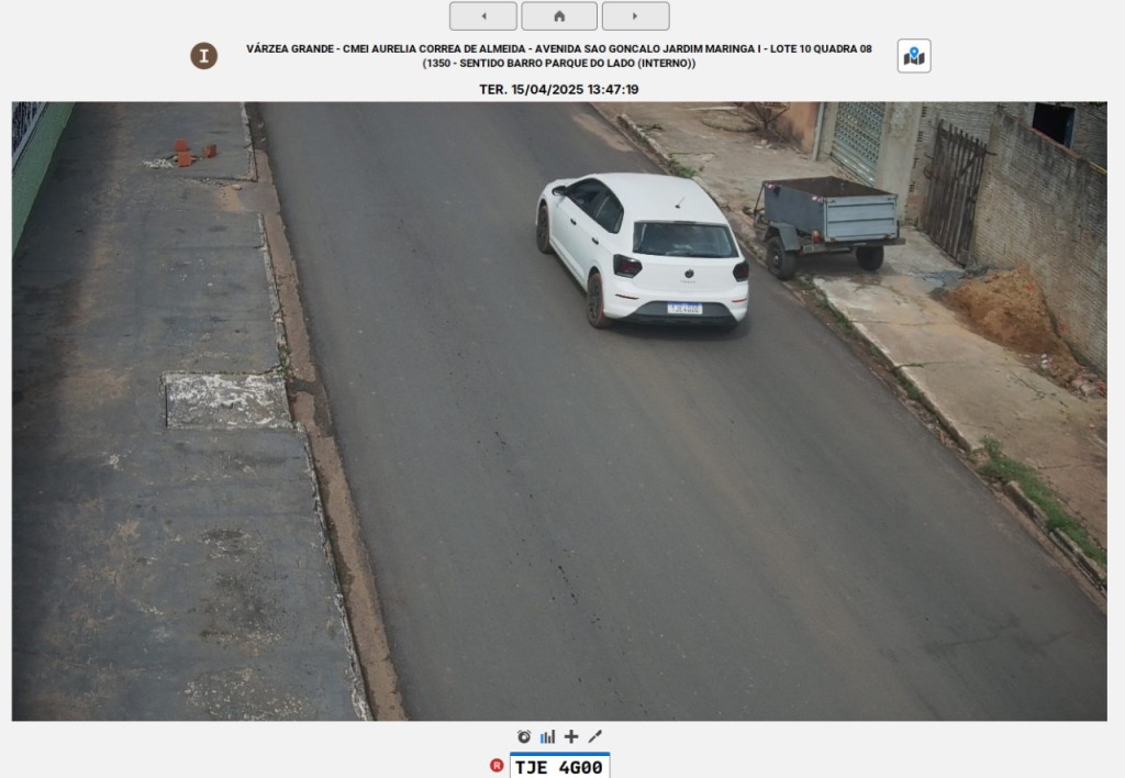 O carro, um Volkswagen Polo branco, foi identificado por operadores do Centro Integrado de Operações de Segurança Pública (Ciosp), que receberam um alerta automático ao detectar o veículo circulando pelo bairro Jardim Maringá.