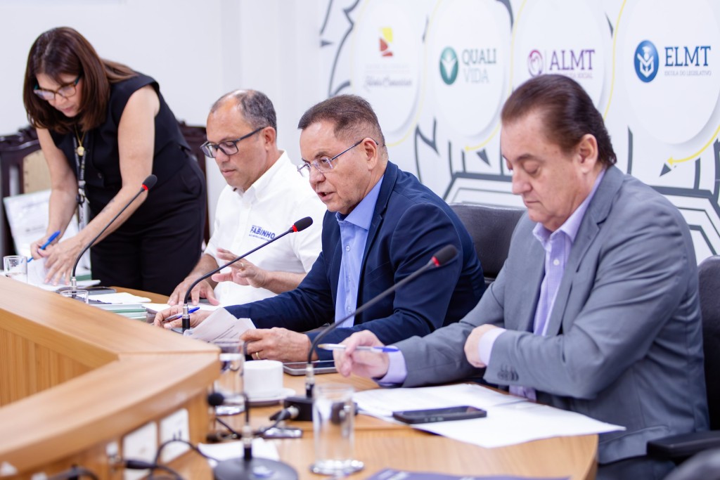 Com 43 itens na pauta, a Comissão de Constituição, Justiça e Redação (CCJR) realizou a 7ª reunião ordinária híbrida, nesta terça-feira (15), na Sala das Comissões Sarita Baracat, na Assembleia Legislativa de Mato Grosso (ALMT). Estiveram presentes os deputados Fábio Tardin (PSB), Sebastião Rezende (União Brasil) e o presidente da comissão, Eduardo Botelho (União).