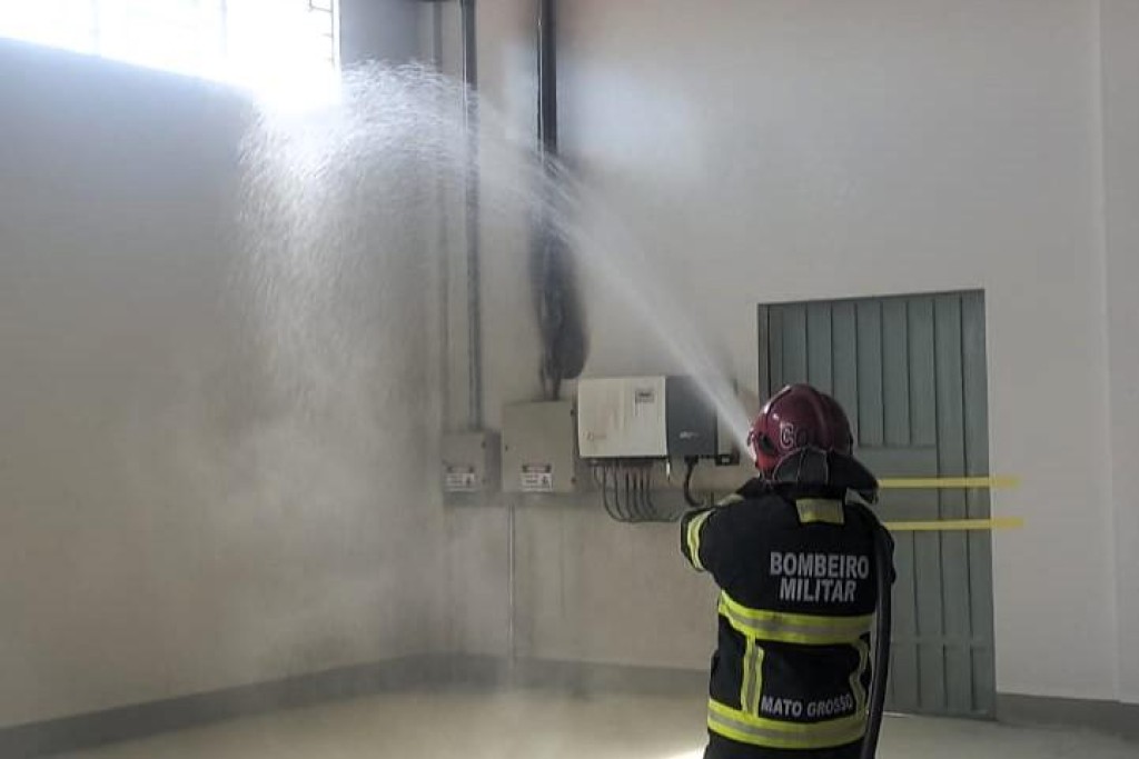 O combate inicial foi realizado com o uso de extintores. Paralelamente, uma equipe especializada da empresa responsável pelo sistema de energia solar procedeu com o desligamento da rede energizada proveniente das placas fotovoltaicas.