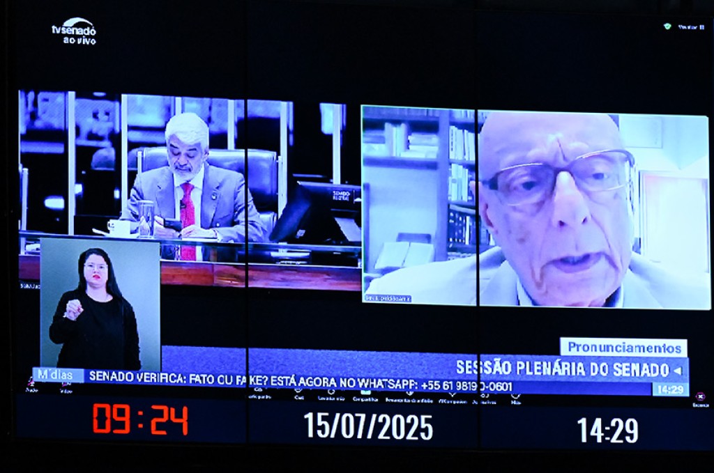 Em pronunciamento no Plenário nesta segunda-feira (15), o senador Esperidião Amin (PP-SC) criticou as tarifas de até 50% anunciadas pelos Estados Unidos sobre produtos brasileiros. O parlamentar argumentou que a medida é um equívoco, por afetar diretamente setores produtivos relevantes do Brasil, como as exportações de carne, madeira, motores e equipamentos industriais.