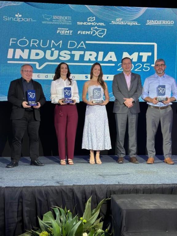 Cinco empresários que ajudaram a transformar a indústria e a economia na região médio norte de Mato Grosso foram homenageados no Fórum da Indústria 2025, realizado pela Federação das Indústrias no Estado de Mato Grosso (Fiemt) em Sorriso. Indicados pela Fiemt com a entrega do Prêmio Destaque Empresarial, em conjunto com os sindicatos industriais, eles representam trajetórias de trabalho, inovação e superação que inspiram toda a cadeia produtiva. O evento contou com a presença do prefeito de Sorriso, Alei Fernandes, e da primeira-dama e secretária da Mulher e da Família, Mara Fernandes.