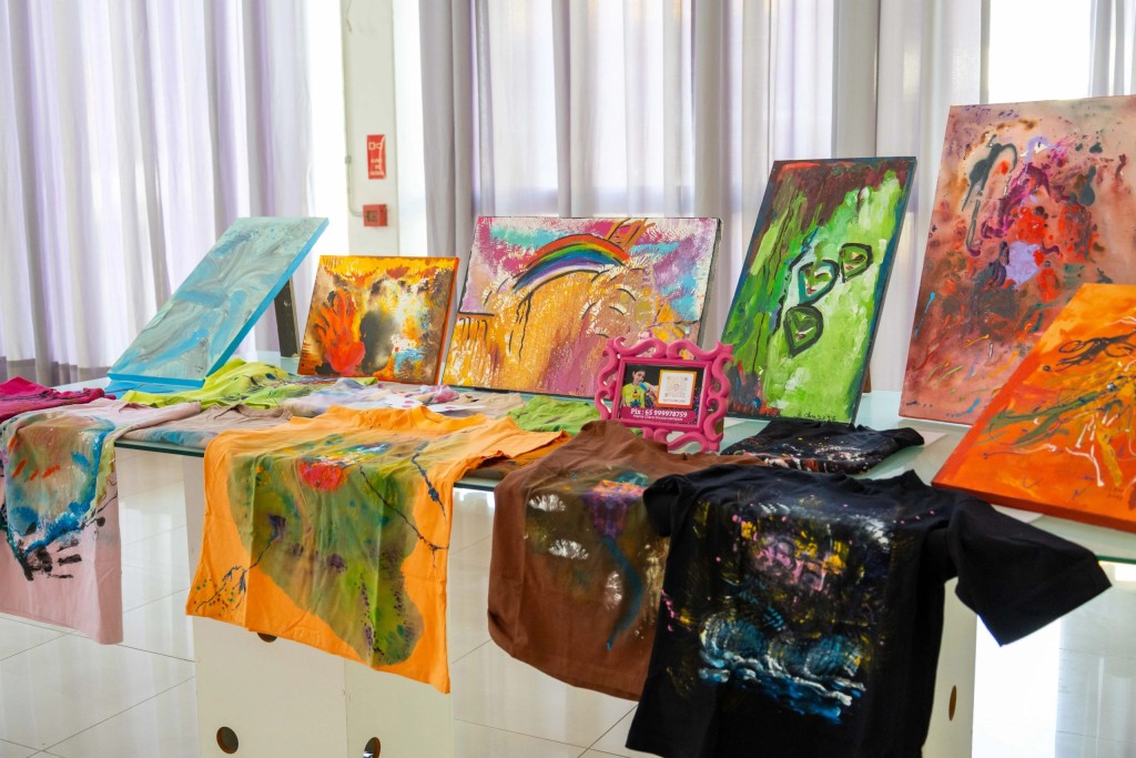 Cuidadosa, ao longo da tarde de quinta-feira (16), horas antes do inicio do evento, Maria Clara já estava presente no local, ajustando cuidadosamente sua exposição, que foi realizada paralelamente aos debates promovidos durante a capacitação. Entre formas abstratas, suas obras refletem a pureza de um olhar único de quem encontrou na arte um caminho de expressão e liberdade. Além das telas, 16 camisetas foram criadas especialmente para a edição realizada em Rondonópolis.
