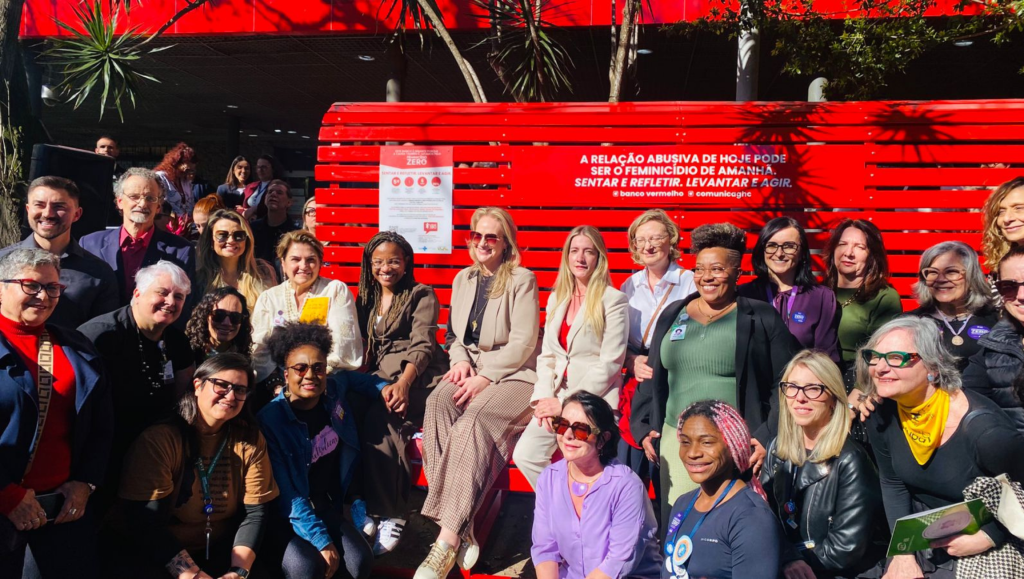 Já a diretora executiva do Instituto Banco Vermelho explicou o caráter democrático e pedagógico do símbolo. “O banco é um ícone presente em praças, hospitais, parques. Mas ele é muito mais que isso: aqui no Hospital Conceição, essa ação envolve também as crianças, que montam banquinhos de palito de picolé com o símbolo do Ligue 180 para entregar às mães. É um gesto educativo que reforça a mensagem: a violência de hoje pode ser o feminicídio de amanhã”, afirmou.