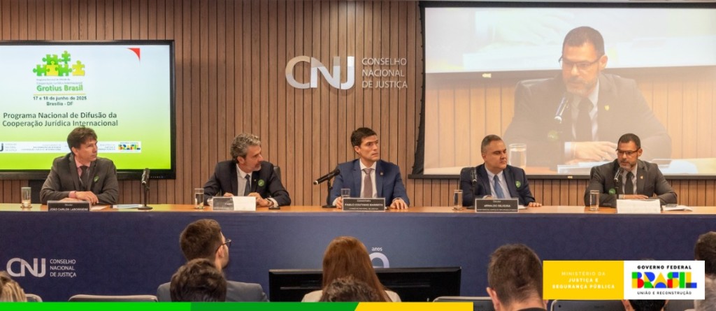 Brasília, 17/06/2025 – Com o objetivo de fortalecer as capacidades institucionais e promover a disseminação de conhecimentos técnicos e práticos sobre mecanismos de cooperação jurídica internacional, teve início, nesta terça-feira (17), o curso do Programa Nacional de Difusão da Cooperação Jurídica Internacional — Grotius Brasil. Essa atividade reunirá, até quarta-feira (18), 120 agentes públicos na sede do Conselho Nacional de Justiça (CNJ), em Brasília (DF).