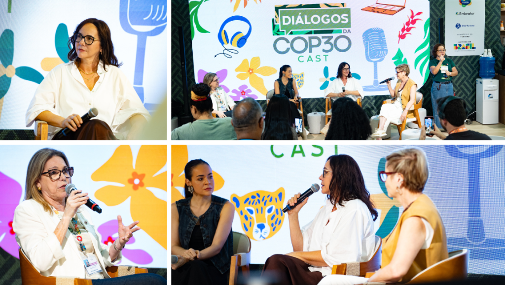 O Ministério do Turismo lançou mais um episódio do videocast “Diálogos da COP30”, no estande “Conheça o Brasil”, na Green Zone, com o tema “Empreendedorismo feminino e as oportunidades na economia criativa do turismo”. A nova edição abordou o protagonismo de mulheres que estão transformando territórios, impulsionando negócios sustentáveis e ampliando as oportunidades no setor turístico.