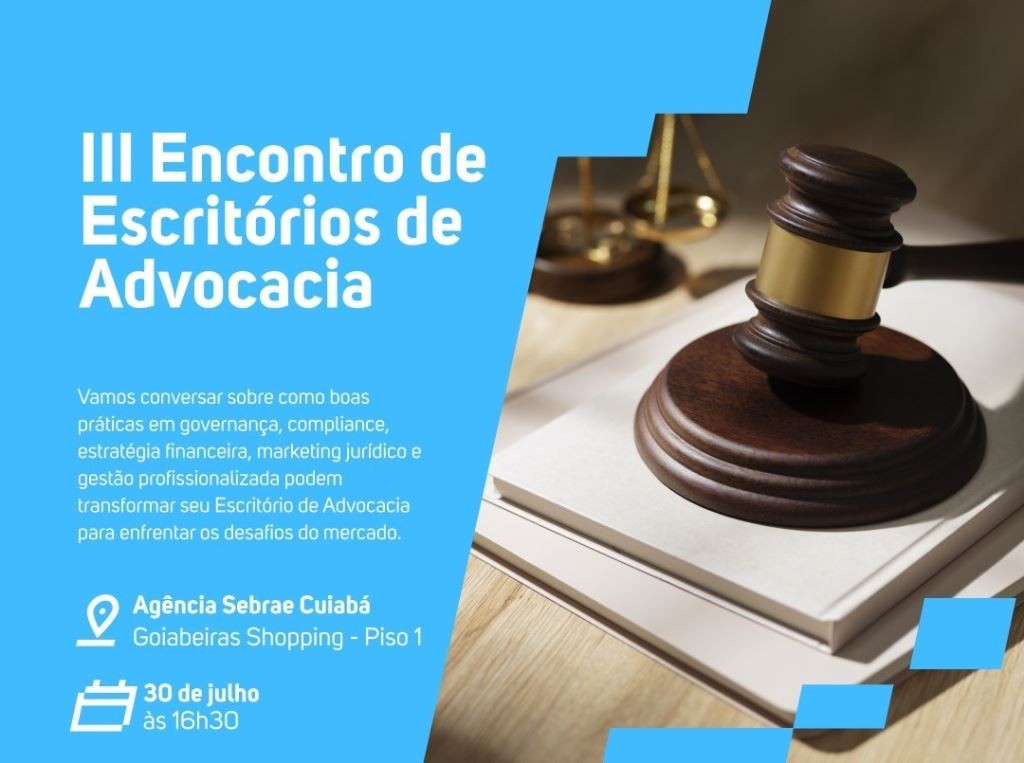A Ordem dos Advogados do Brasil – Seccional Mato Grosso (OAB-MT) e a Escola Superior da Advocacia (ESA-MT) convidam para o III Encontro de Advogados. O evento é promovido pelo Sebrae MT, com o apoio da OAB-MT.