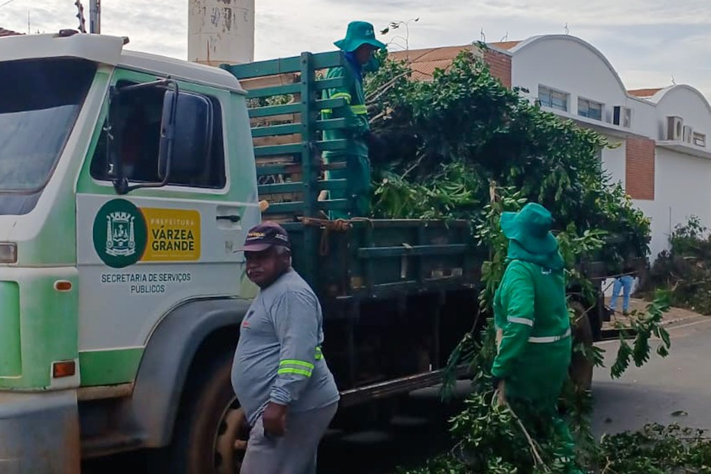 A Prefeitura de Várzea Grande intensificou os trabalhos de limpeza e desobstrução de vias após a forte chuva acompanhada de vendaval registrada na tarde da última segunda-feira (2). A ação, coordenada pela Secretaria Municipal de Serviços Públicos e Mobilidade Urbana, tem como foco principal a retirada de árvores que caíram sobre ruas e avenidas, além da remoção de galhos, resíduos e entulhos espalhados pela cidade.