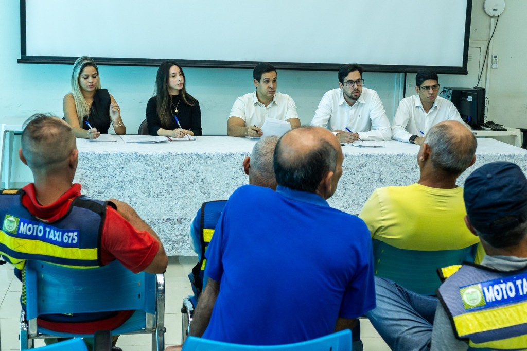 Os secretários de Mobilidade Urbana, Thales Tatí, e de Governo, Mykaell Thiago dos Santos Vitorino Bandeira, junto com o procurador-geral adjunto, Vilmar Júnior, explicaram sobre o cumprimento de alguns artigos da Lei 6.840 que estavam gerando dúvidas entre os mototaxistas e debateram sobre outras pautas apresentadas pela categoria.