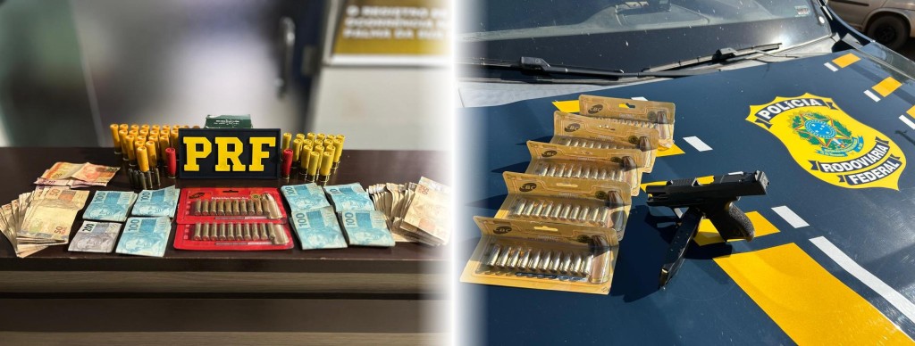 No sábado (23), durante uma fiscalização de trânsito no km 1.062 da BR-163, em Guarantã do Norte, os policiais abordaram um veículo e localizaram dentro de uma mochila munições de diversos calibres. Ao todo, foram apreendidas 25 munições calibre .38, duas calibre .16 e outras 38 calibre .20, todas da marca CBC, além de R$ 9.035,00 em espécie. O caso foi registrado como porte ilegal de munição de uso permitido e encaminhado à Polícia Civil.